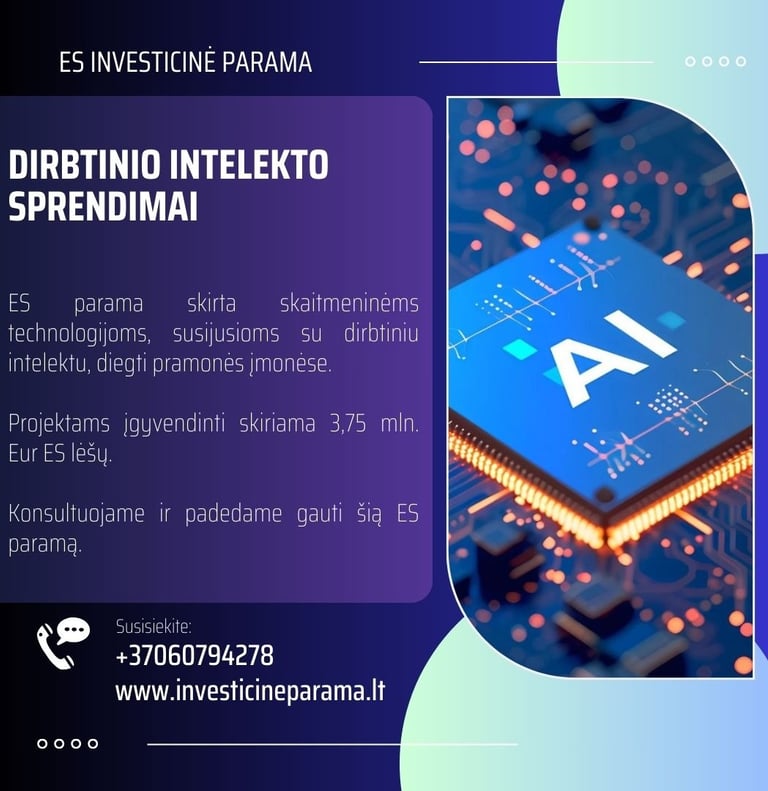 ES parama skirta skaitmeninėms technologijoms, susijusioms su dirbtiniu intelektu, diegti pramonės įmonėse