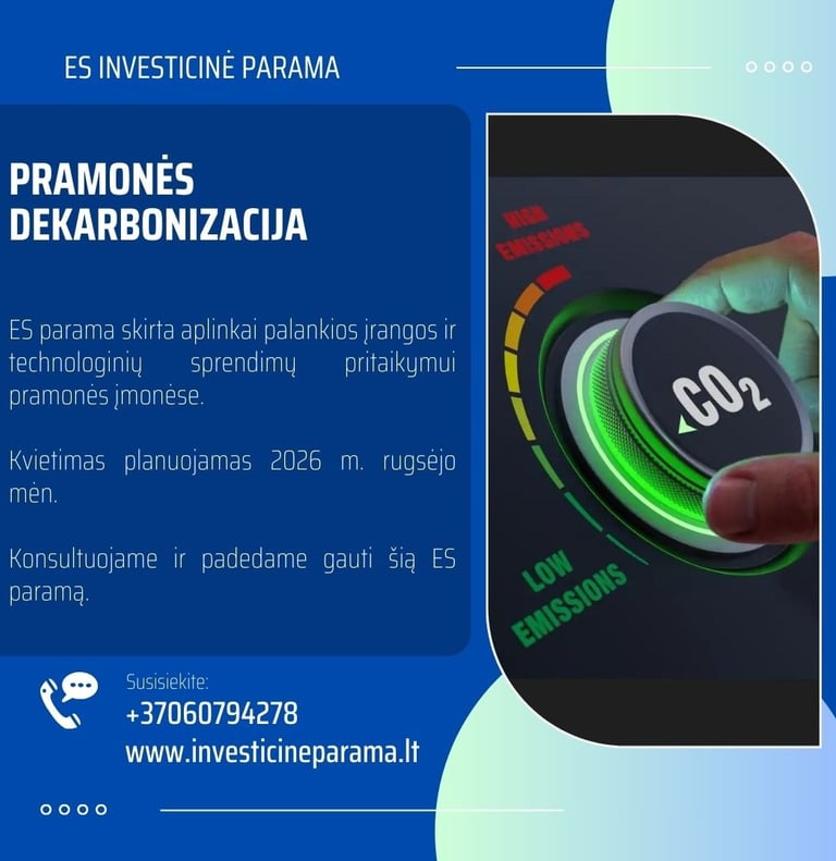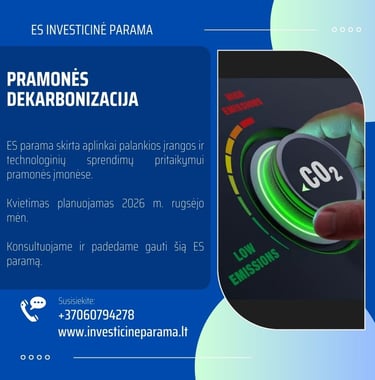 ES parama aplinkai palankios įrangos ir technologinių sprendimų pritaikymui pramonės įmonėse